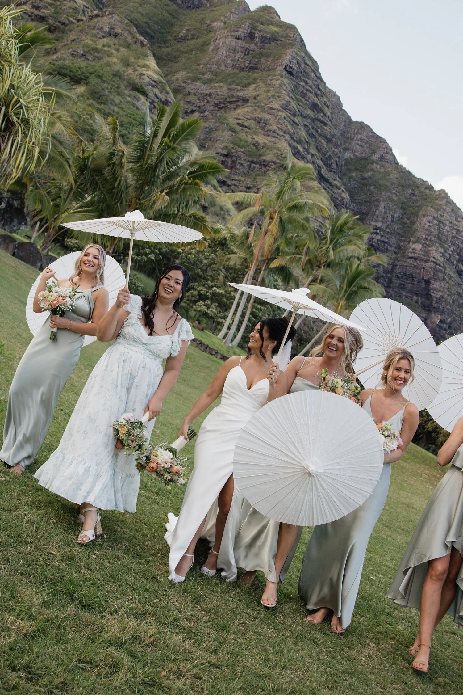 Sandy and Mitch’s wedding at Kualoa Ranch was actually my first wedding of 2025. This has me incredibly excited as it was SUCH a high note to start the year off on, I can only imagine what else is in store for this year! Their choice of Kualoa Ranch as their wedding venue was part of what made their day so spectacular, but much of it came down to the intentional experience these two created with those they love. It’s the excitement from Sandy’s bridesmaids as they see her in her dress for the first time, Mitch tearing up as Sandy walks down the aisle, the hype as Sandy rejoins the reception after her epic dress change. It never ceases to inspire me when couples put this much intention into their day, and when it’s all wrapped up in the immense beauty of Oahu it’s an experience that’s wholly unforgettable.
